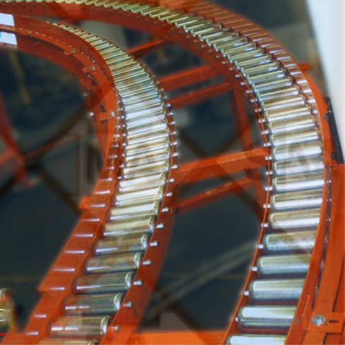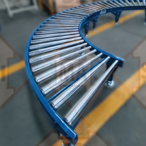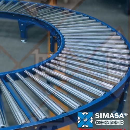 El transportador curvo o curva de rodillos está diseñado específicamente para cambiar la dirección de los productos dentro de un sistema